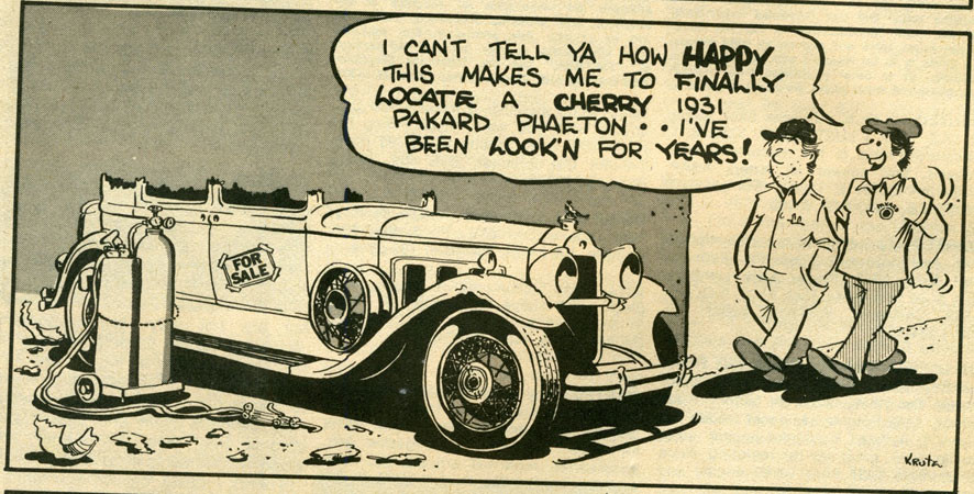 Funny how these things "just turn up". A friend who dropped in to inspect the new project brought an arm full of old magazines that he thought I may like to see. This cartoon turned up at on the back page of the Winter edition of Old Car Illustrated (No Connection) Vol 2 No4 of 1976.