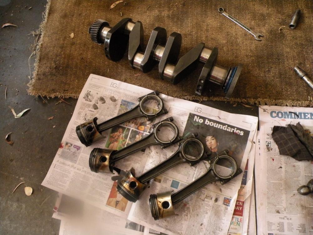 Tomorrow I can take the gearbox off and turn the motor over (upside down) so I can remove the crankshaft and then the con-rods and pistons. Until someone can convince me otherwise I suspect the petrol I had to buy at some out of the way service stations during out ten day trip to central New South Wales was a long way from the normal 98/100 octane fuel that the Lagonda usually uses. I had a similar problen several years ago after doing a long trip using out of the way petrol stops. Many have just the one pump and what comes out of the hosepipe is what you get.