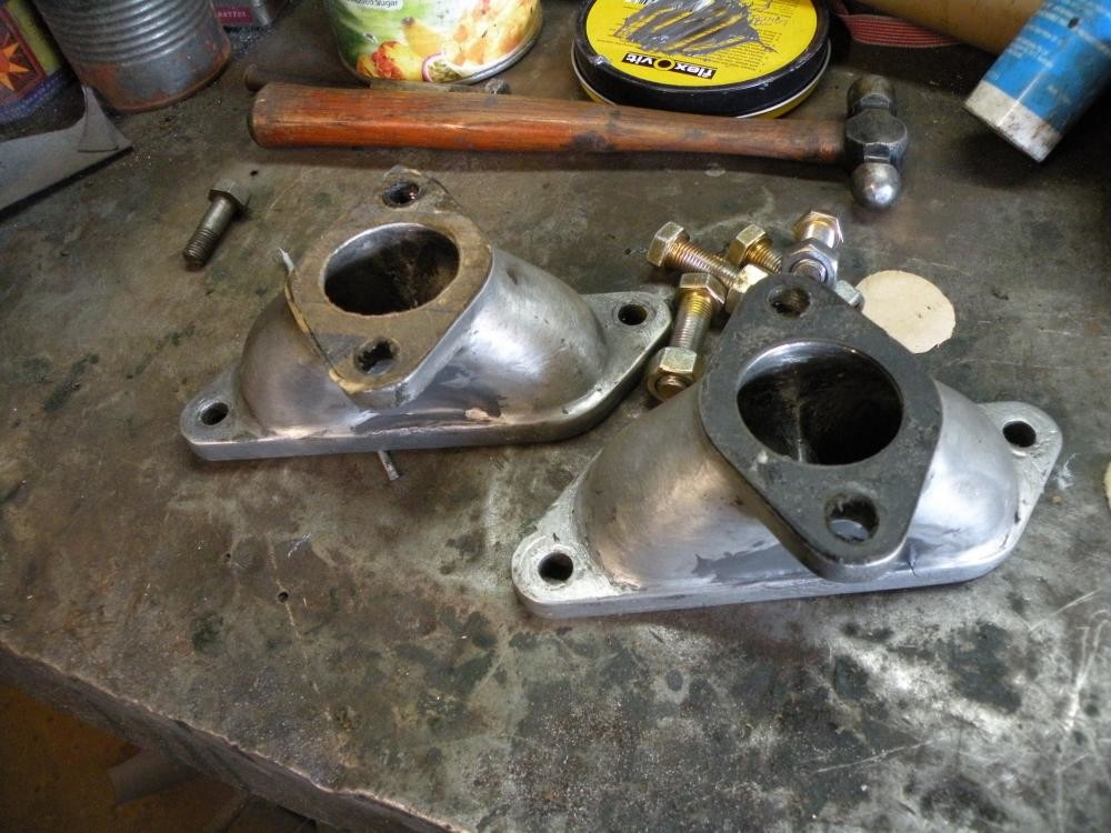 Towards the end of our drive around south western Victoria the Rapier decided that it did not want to idle nicely (at 800 rpm). After diagnosing the fault as an air leak on the induction side, I have this morning removed the inlet manifolds and carburettors and discovered a small air leak due to minor damage to a gasket. I am now in the process of cutting new gaskets and hope to put it all back together again tomorrow. Leaning off the mixture is not a good idea. It serves me right for re-using a gasket last time I had the engine apart. Usually I will not use "silicone" gasket "goo". so I deserve a smack for trying to take a short cut.