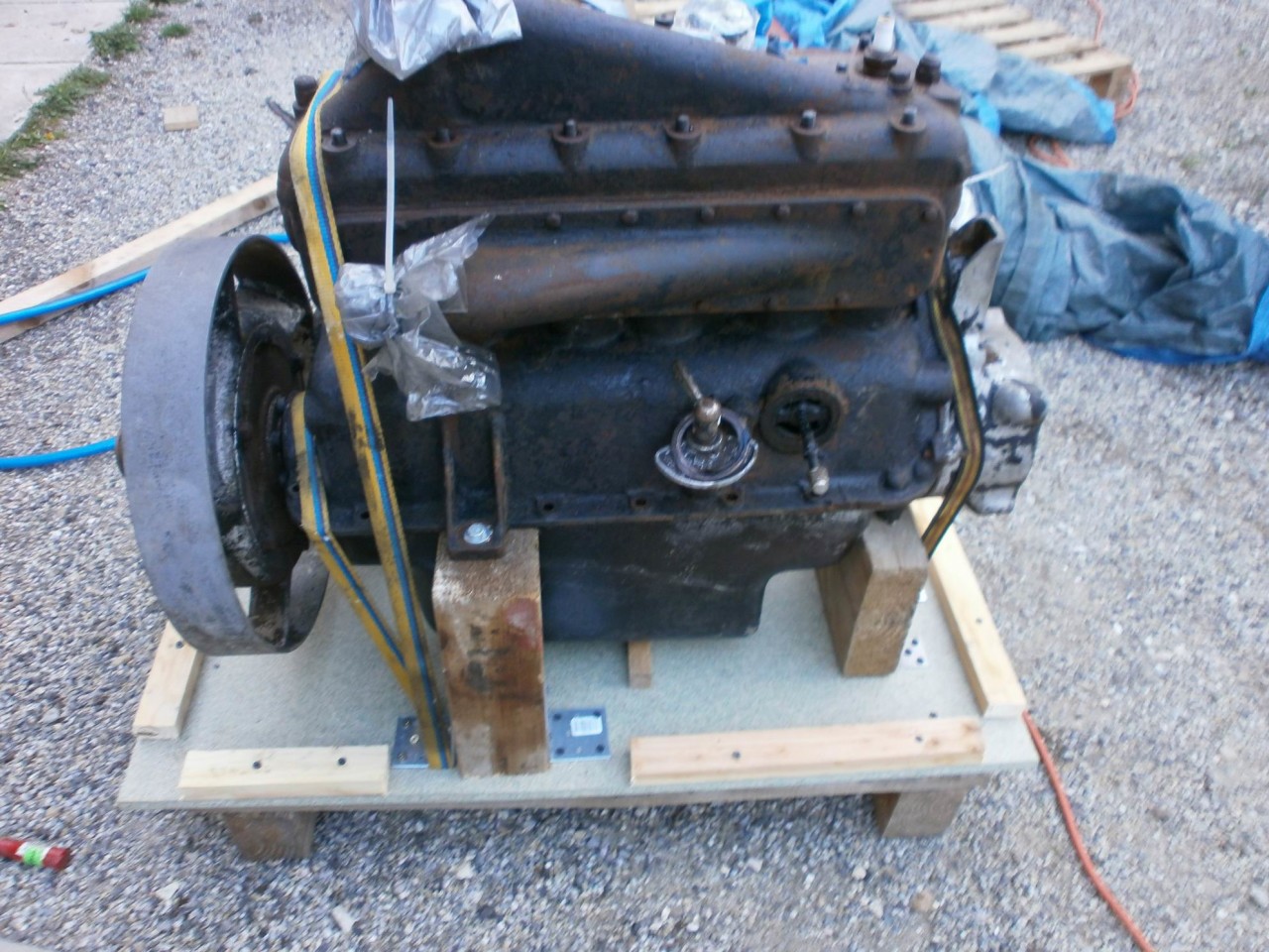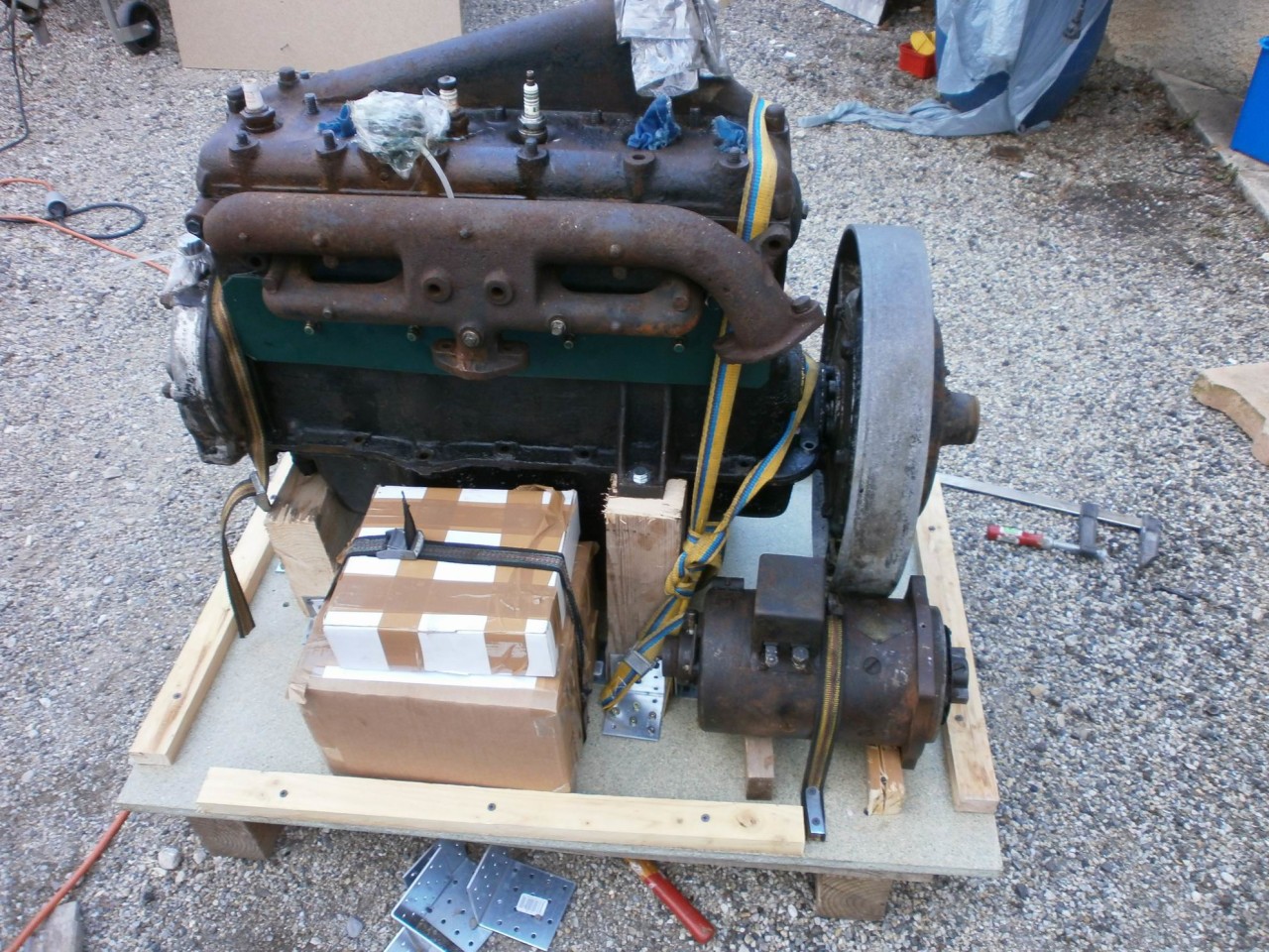 Progress! Jean-Paul has sent these photographs of the Mona-six engine being made ready for the long journey from the South-east of France to the South-east of Australia.You can clearly see the large flywheel cooling fan and the Dynastart lashed down beside the motor.This mounts onto the front of the timing case and is driven directly from the front of the crankshaft. Carburettor, distributor etc are packed carefully in the smaller boxes.