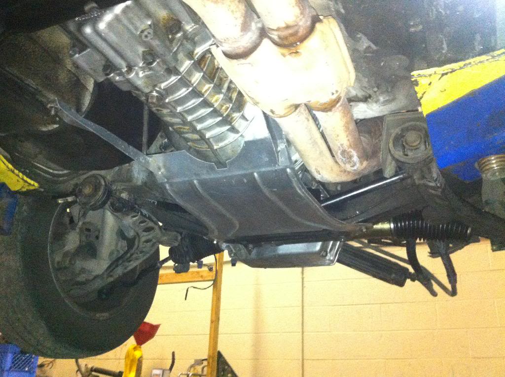 Dropped the destroyed pan; razor bladed mounting surface for a smooth mate with the new gasket; bolted up the new (repaired) pan. Mounted everything back up, got some new motor mounts in there. Twas about a 4 hour job because I decided to go in a little crazy with the Purple Power and clean virtually EVERYTHING. Forgot to drain the tranny to put in some Redline MT90 instead of the ATF I'm running now, but.. Eh... I'll do it eventually. It's not exactly on my need-to-do list