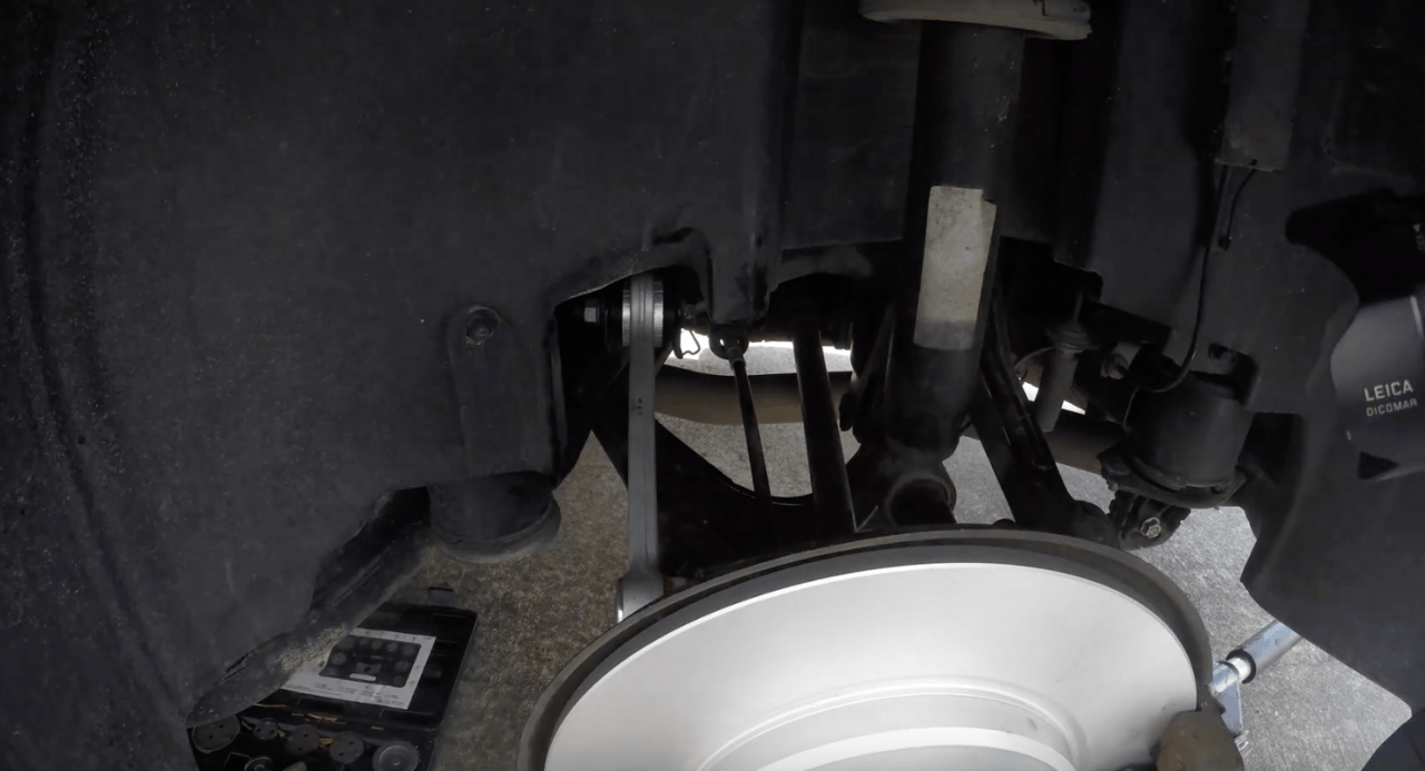Start by jacking up your vehicle on a level surface and removing your rear wheels.