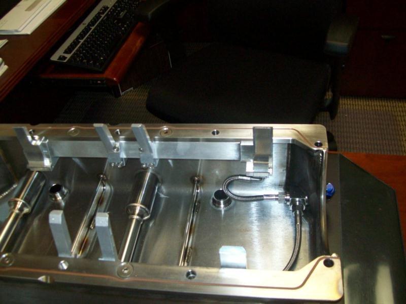 Here is the oil pan that I picked up from Hendrick. Left over Busch Grand National pan that was never used with piston squirters.