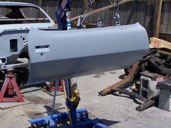Note to self (Dont lay directly under spot being welded) My shirt looks like swiss cheese not to mention all the burns on my chest. All welds were ground and temporary primer was applied to prevent rust. I glass beaded both r/s door hinges, cleaned and wiped down the r/s door and epoxy primed door, hinges. Next i started to remove the bad metal on the drivers side A pillar.