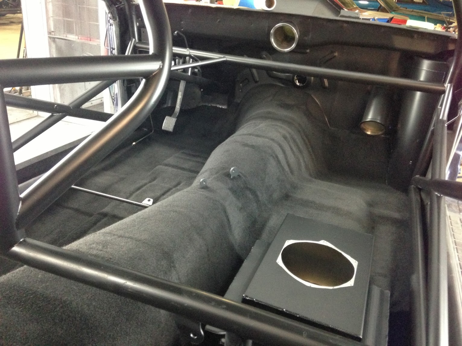 The inside of the car is going to be sprayed in a satin black. We also chose a satin black powdercoat for all the charge tubes, mounts etc.... inside to help keep it looking clean and allow a lot of stuff to blend in. We wanted it to look stealth. The nice thing should be when you look inside the car the parts are not just going to stick out but hopefully blend right in together.