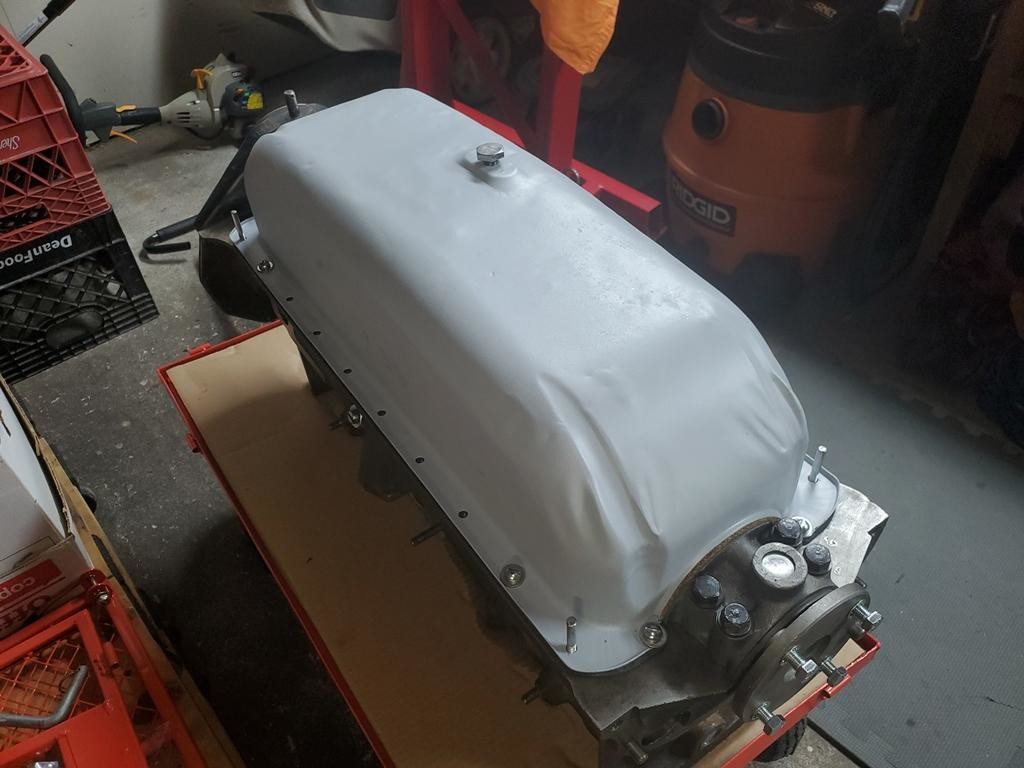 now that the bottom end is done, oil feed lines and Oil Distribution valve & Oil Pump in place, oil pan gasket installed and seated. Time to flip it over and start on the top half. When Flipping it over I used both my Engine Stand & Engine Lift. Wanted to ensure that if it slipped in the stand the Engine Lift would have it