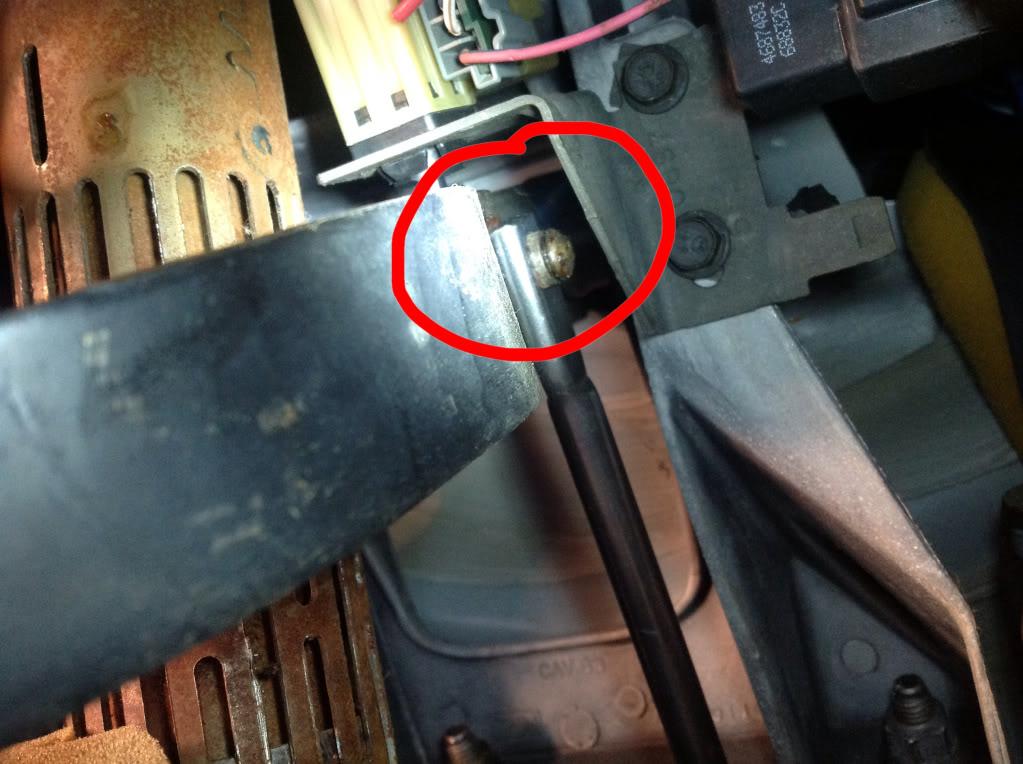 Now from the inside of the cab under the dash, by the steering column. Locate the rod that comes through the firewall and attaches to the brake pedal. At the point of attachment is a metal clip and washer, that will need to be removed to remove the rod.