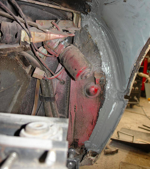 Not my favourate part, working in the wheels wells. Some Honda or whatever forum found my site and critisized my welding, they are absolutely right.