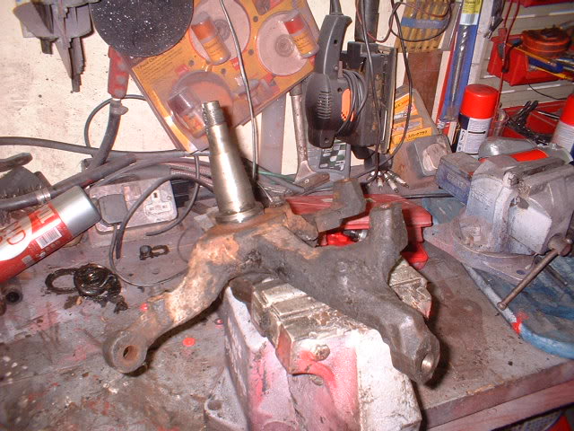 Prepping the suspension parts for paint. Here's one of the spindles. greasy rusty thing it is