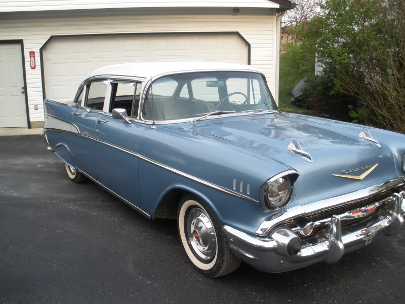 I found a 57 belair 4 dr sedan on cl near Lexington, KY. It has a 283 ci with a old cast iron power glide. Manual stearing and brakes. Drums all the way around lol. It is in great shape. A old fella owned it and he passed away recently. The family was selling two of his old cars. This and a 1950 olds "88". The guy said his father drove this car all the time and said it was the best driving car out of the 4 he owned.