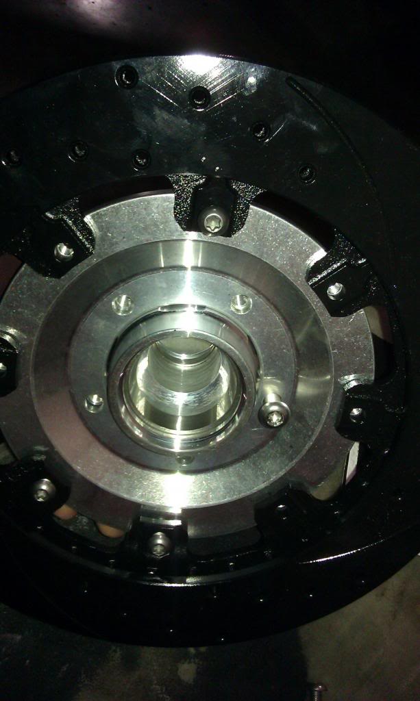 NOTE the black rotors. This is a coating Wilwood puts on that keeps them from rusting and allows for correct seat-in on the brakes. It's some kindof mystery goo that actually works well for both purposes. Some people's first reaction is to take this coating off with abrasives or chemically. I've experimented with leaving it on or taking it off on various vehicles, spent time on the phone with their tech department about this a few times, and have learned the benefits of leaving it on. One or more of the cars that we removed the coating on ended up needing pads prematurely on the front due to noise/sqeaking. ...may or may not be the reason but on this car I left it on the rear and now the front and I followed Wilwoods break-in procedure to the letter. I've had great results just leaving it on. The brakes make some HORRIBLE noises when coming to a stop during the break-in process and if one can suck it up for a few minutes it goes right away and once the brakes cool they are good to go!