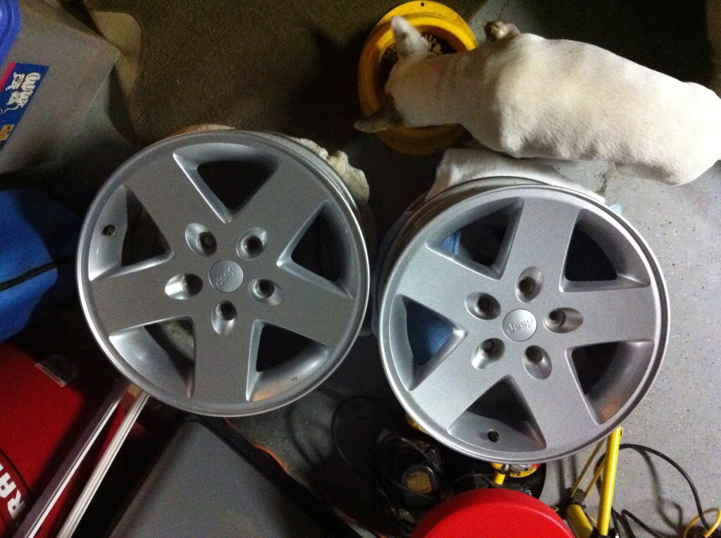 With the stinger and rock sliders the jeep looks alittle funny on 31's and so I wanted to go 33's. But wanted to get different wheels while in the process so after hunting TJ moabs with no luck(wanted them cheap) I ended up with a set of JK 17" moabs. But still haven't decided between Cooper SST and KM2's