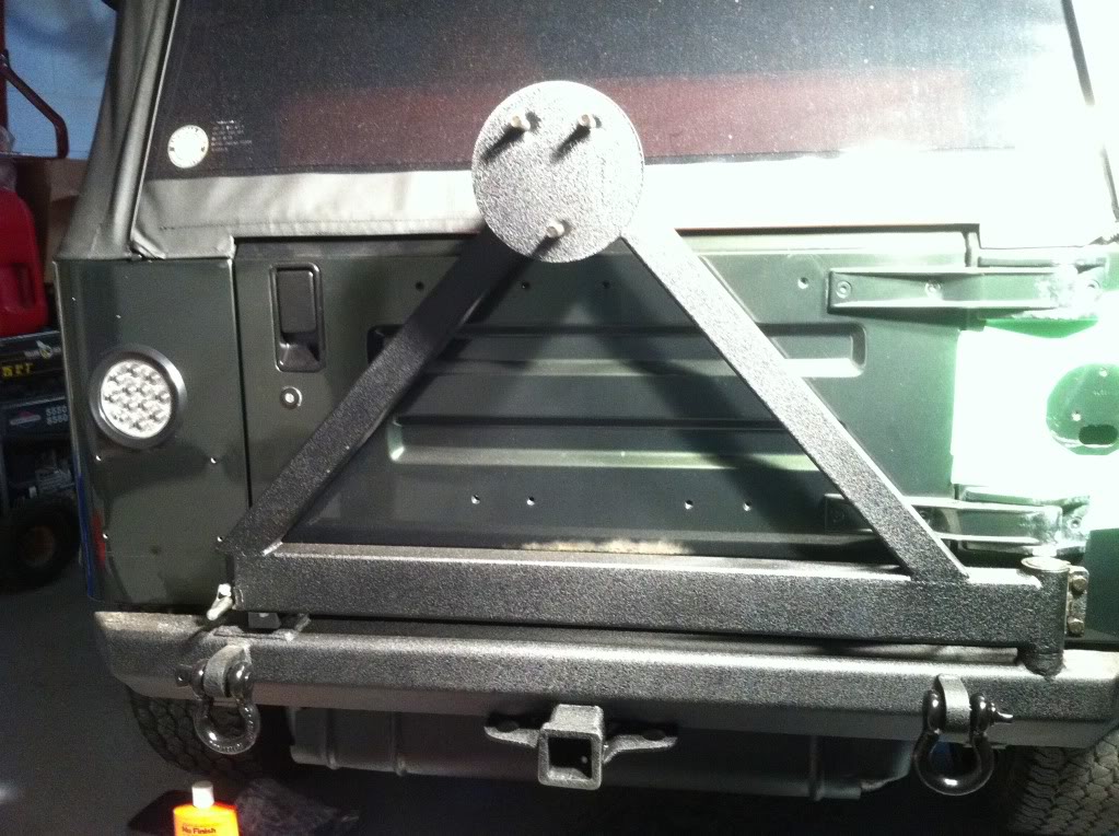 Got a heads up on this forum about a deal on the rear smittybilt bumper and tire swing I couldn't pass up so bought one and installed then decided to go the LED tail light route. Cut holes with jig saw and after referencing some threads on here install was a piece of cake.