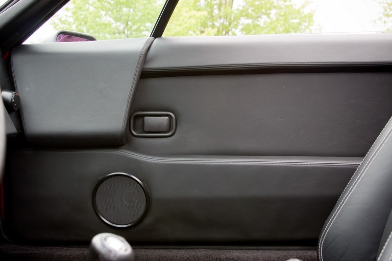 The interior was completely redone. Every piece of trim was re-wrapped using several hides of color/grain matched leather. The three IP pods were disassembled and sprayed with a modern robust German paint in a light stiple grain. An Alpine service center had old parts and the radio was completely restored to "as-new" condition. Items like the ashtray were re-chromed and the shift knob gate powdercoated. The carpet was replaced as well...