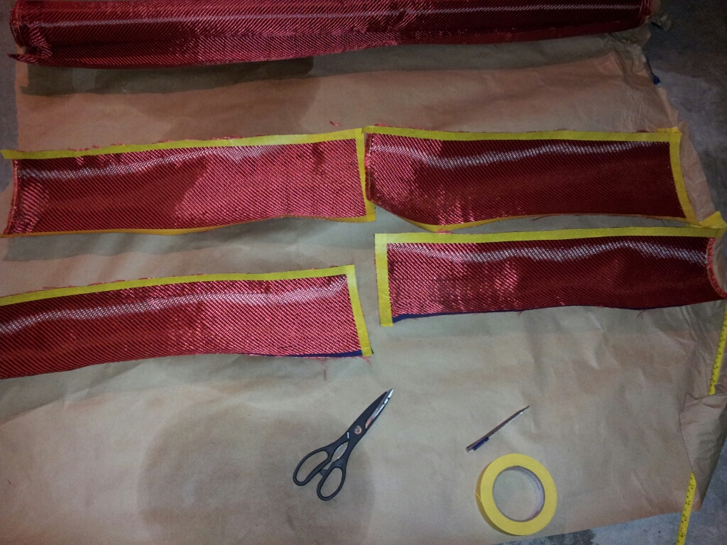 I would've done this in fiberglass too but I didn't have any, but I did have some raw carbon fiber left over from another project. I cut 4 strips, the taped border is so the material doesn't fray.