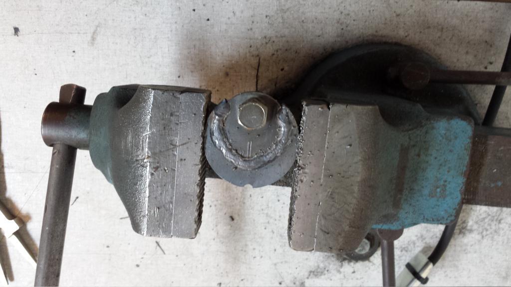 I finally man'd up and bought a welder. I have been borrowing friend's and farming out little jobs for far too long. With my upcoming exhaust modifications, and needing to get the camber bolts welded, I knew it was time to pick one up. Weld shop was closed so I had to use flux core on the below. I will have argon for the exhaust work, and I will be backpurging.