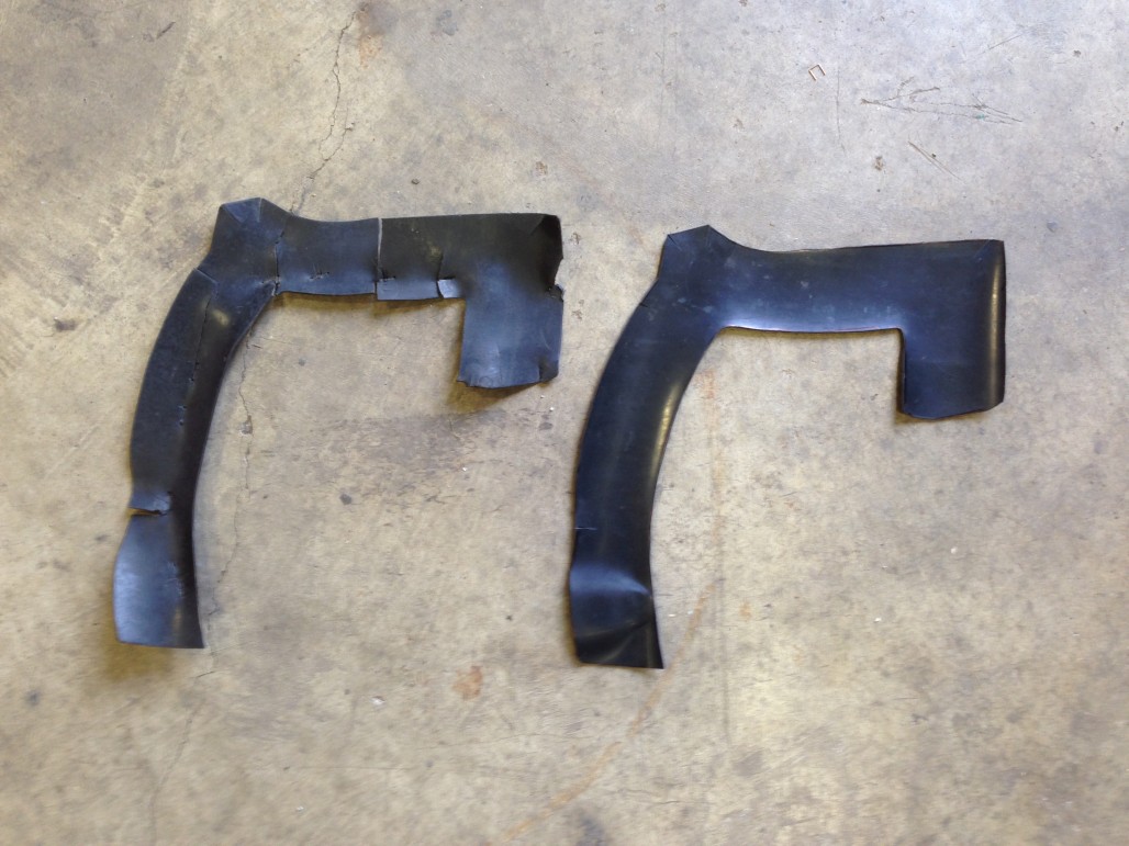 I also had to fix up my LH front splash shield. The rubber was much more brittle than the other side for some reason, and broke into a few pieces when I took it off the metal bracket. So I ordered some sheet rubber online and made a replacement.