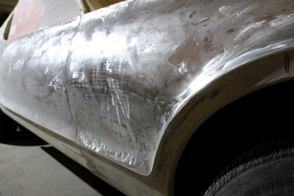 There were issues with some of the wheel arches being crunched, and they had been re-sculpted with bondo. The truth comes out when you go down to the metal.