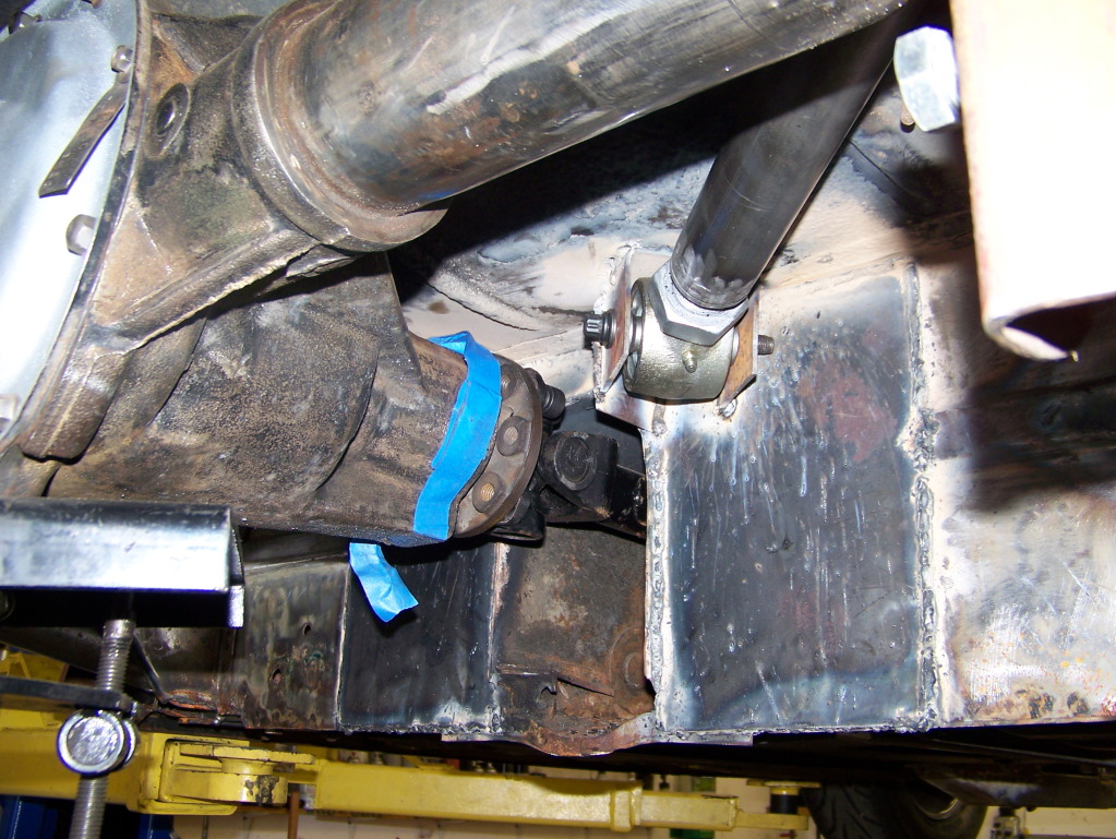 I then welded some more metal, for strength, around the driveshaft tunnel where the upper link brackets will attach:
