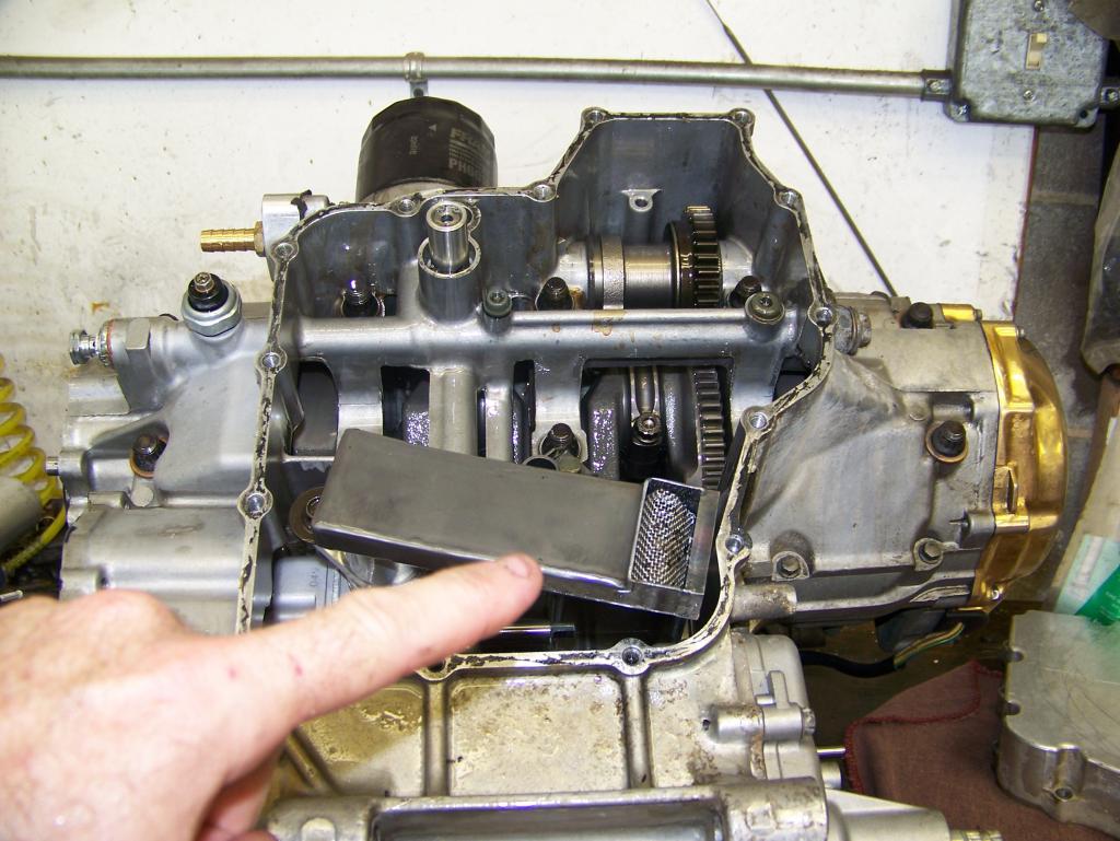The fancy swinging oil pickup so the motor won't starve for oil under cornering g's!