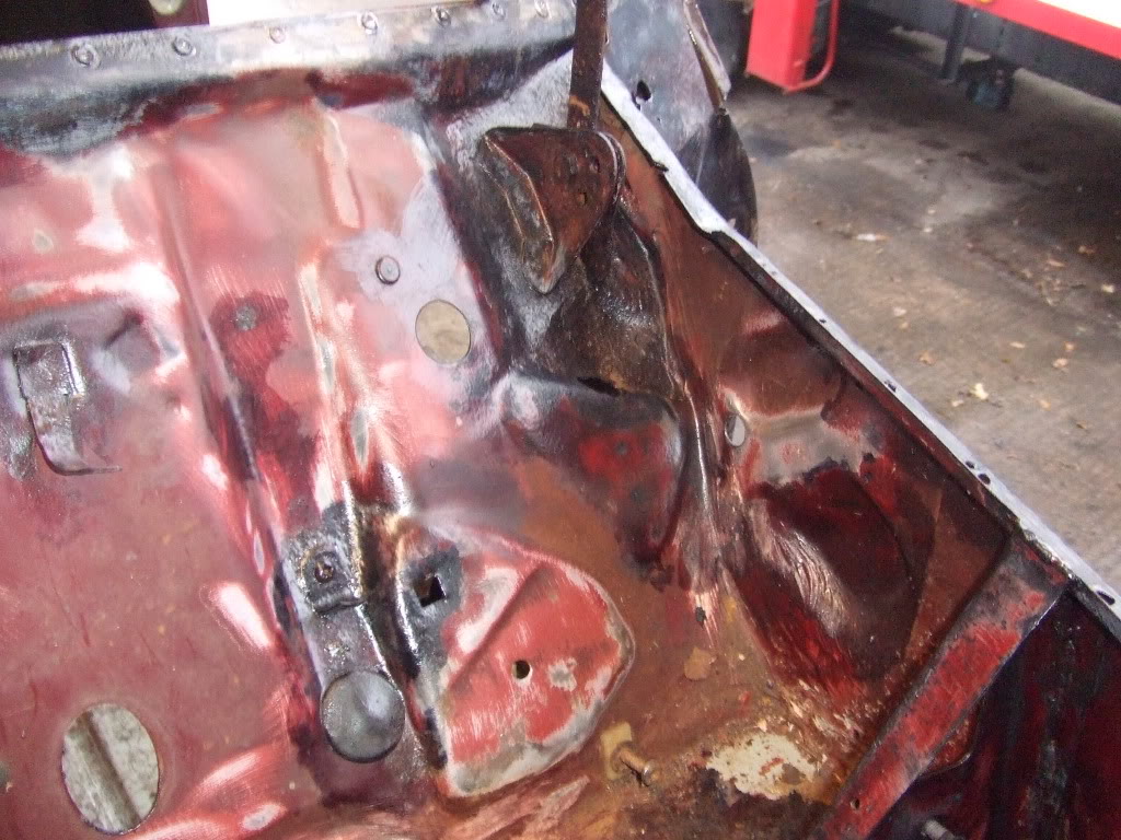 before repairing the shock mount, we filled the inside of the bulk head cross member with rust reverter