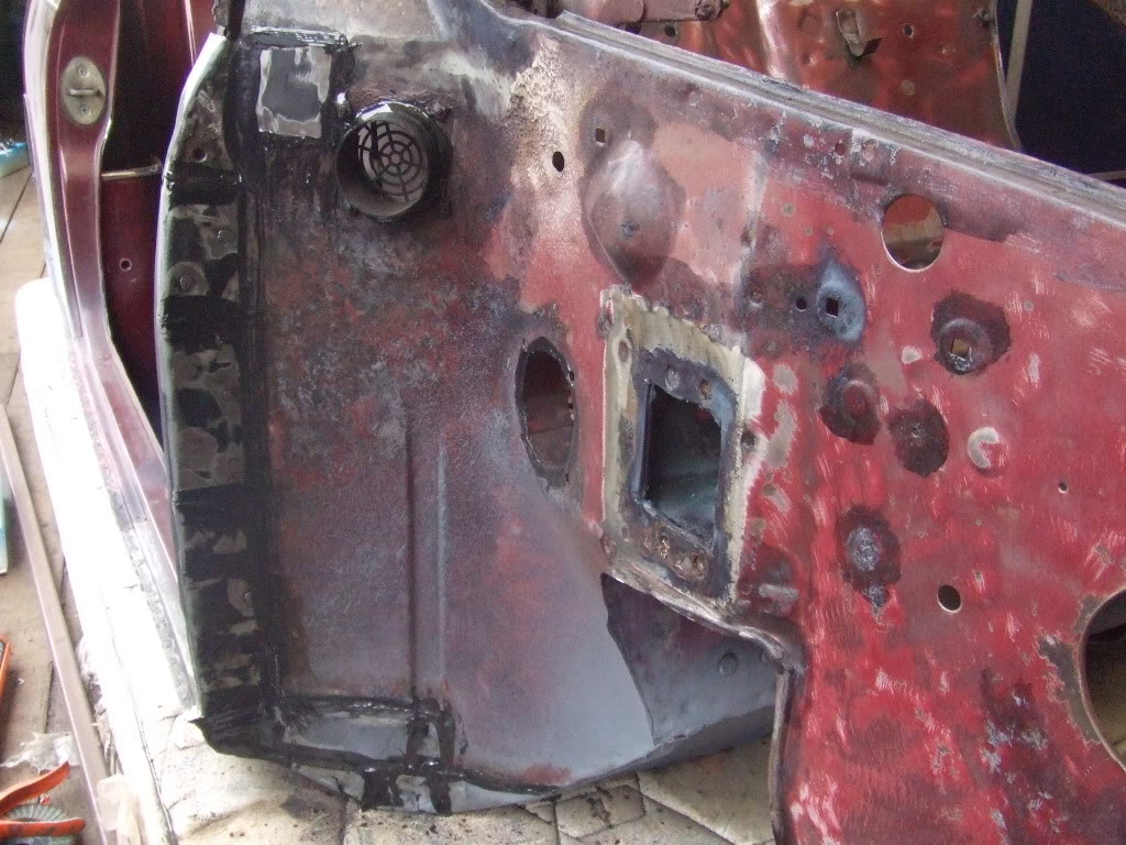 next weekend we will fit the front end panels and then check the car over for any rusty patches...primarily the roof gutters and window frames, hopefully the bubbling paint is just surface rust...we are fed up with welding for now