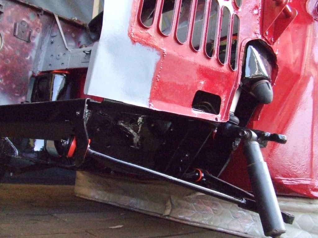 then we bolted on the subframe, the black paint and red poly bushes really stand out against the fresh cherry red paint