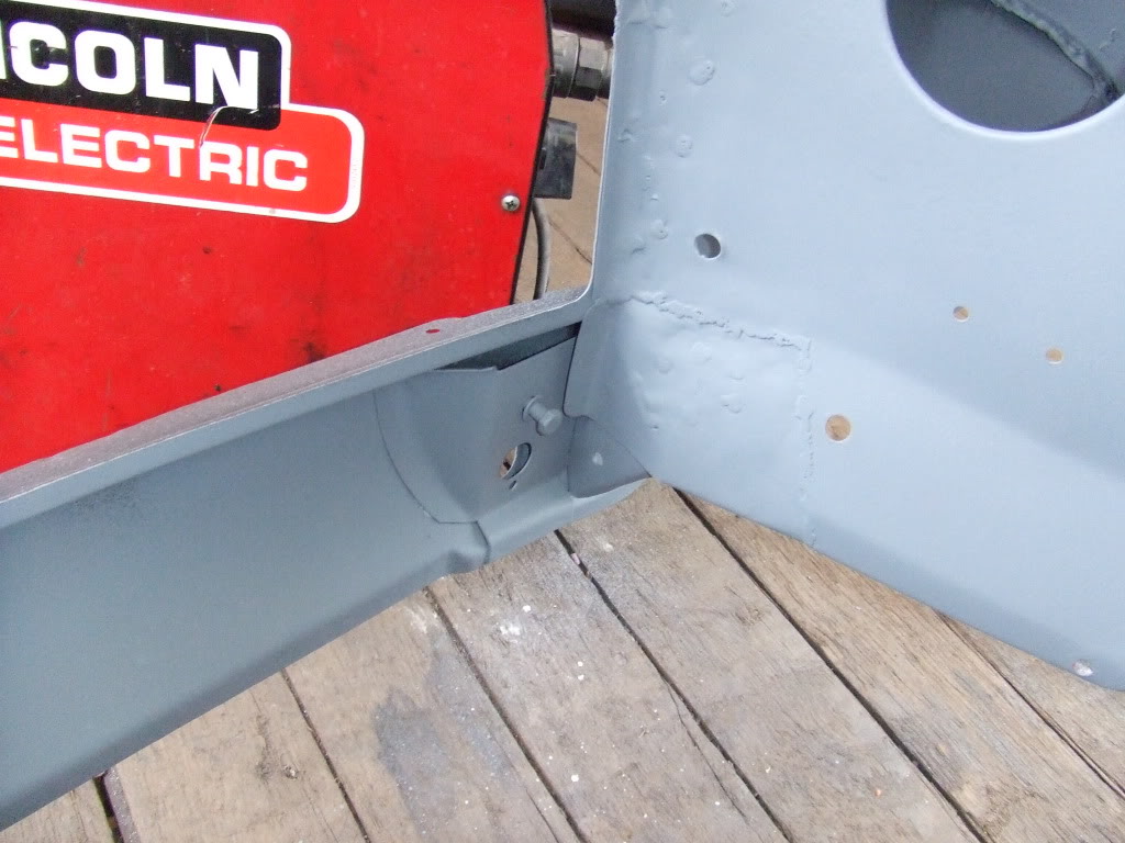 the other rear quarter frame was fine, the small spots of bubbling paint on the back of the car were just slight surface rust, the roof gutters and vertical corner seams cleaned up good and there was no other areas of rust on the car. we welded up the holes and decided to put some more weld in the rear quarter repair panels to fully seam weld them...and that was that, the shell's body repairs are finished