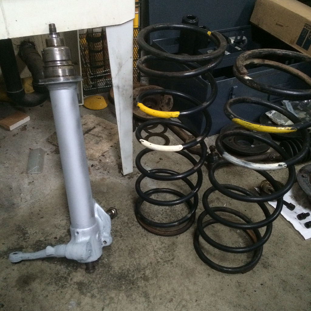 The struts are both cleaned and one is painted, one is primed as of Wednesday evening. Main suspension arms are painted.