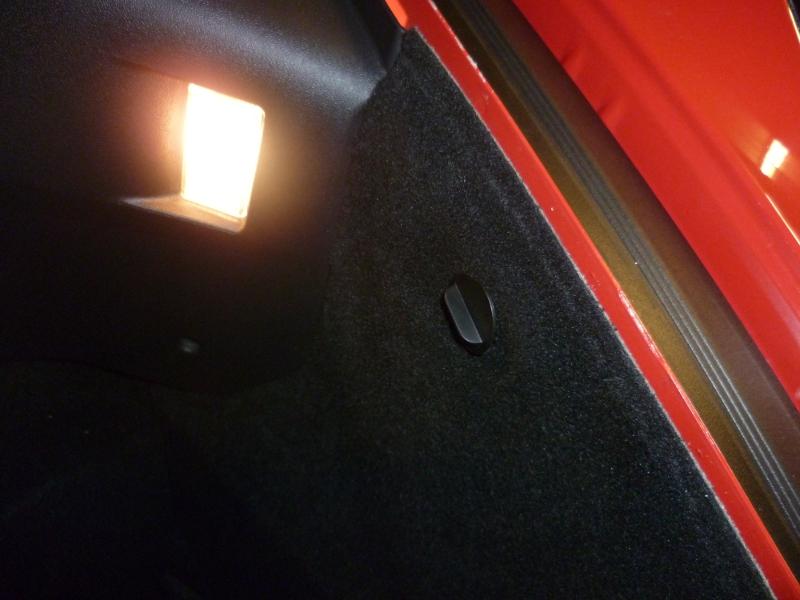 After removal of the triangular plastic piece, you will find a large and small circular rubber grommet separating the 2 compartments. Pull out the smaller grommet and thread the Positive and Negative wires through the hole and into the battery compartment area. Make a slit in the grommet to allow the wires to go through when the grommet is replaced back in the hole. It should look like this: Note: The Fuse Holder connected to the (+) wire will fit through the hole if you twist the cap off. This will separate it into 2 pieces. The bottom piece will go through the hole with ease. The top piece,will just be brought over and reattach to the bottom piece again.