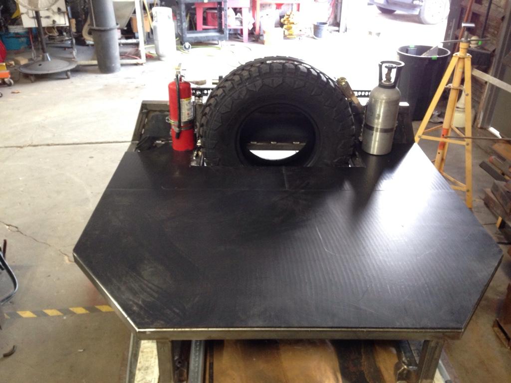 Fire extinguisher and co2 tank mounts installed. Test fit the new tire just and everything still fits.
