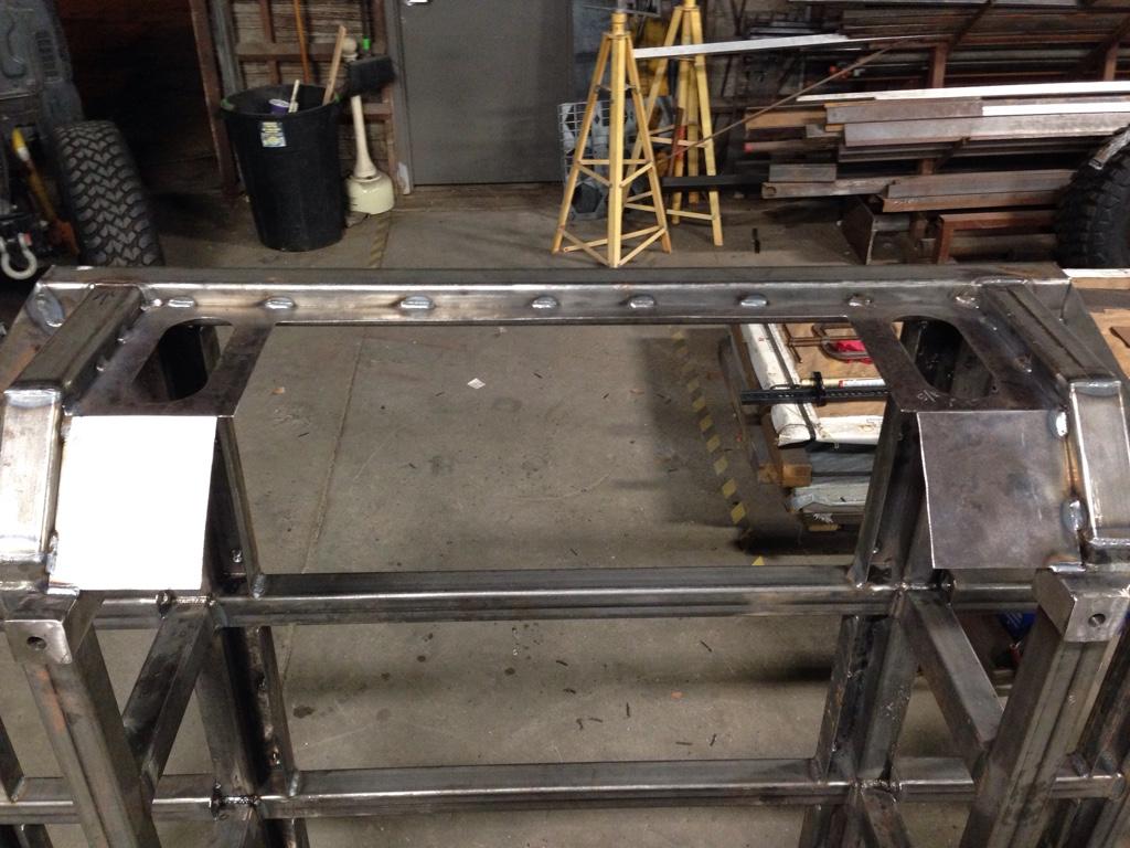 Ok, the bed is fully welded. It's ready for paint prep tomorrow. I also clearanced the deck to fit around the rails.
