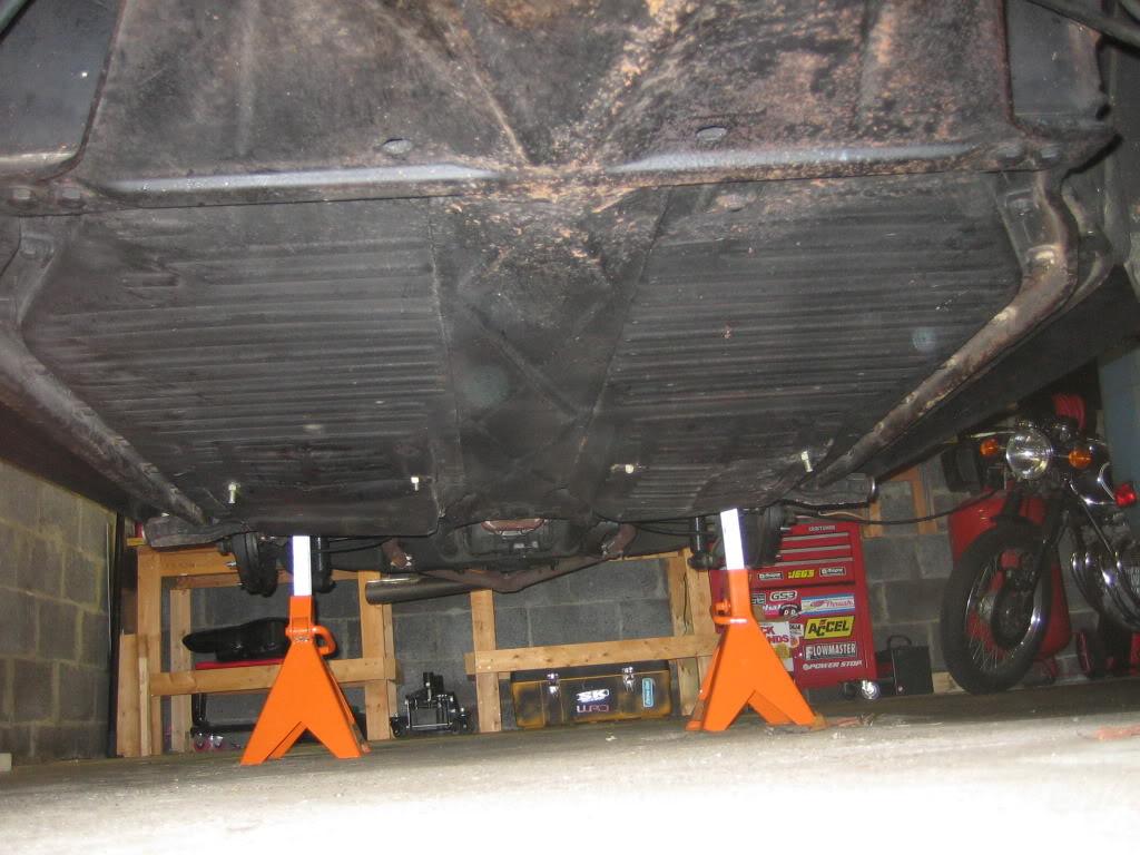 In preparation for the CB disc brakes on order I got the car up on jack stands and ready for action. This was quite a task by itself. There was a lot of 2x4s and various jacks involved but I got it up there