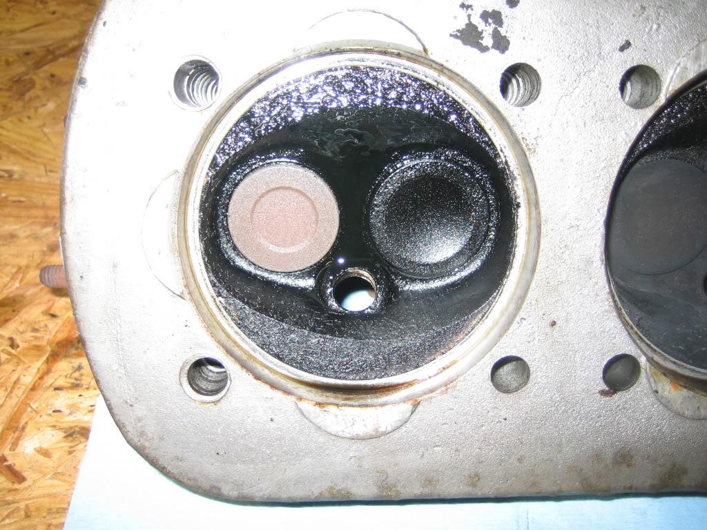 Here are the heads. See the discoloration on the intake valve of cylinder three? It's oil and I'm a bit concerned. There was a decent puddle in there when I pulled the head. The cylinders show a bit of scoring but nothing too extreme (I don't think). I'm really wishing I had done a compression and leak down test before I pulled the motor. Of course at that time I was just gonna replace the tins :D:.