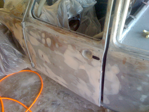 The rest of the body is pretty much ready except for sanding down a couple spots the needed a little filler, which you can see as the darker shade of bondo. Pin holes and grooves.