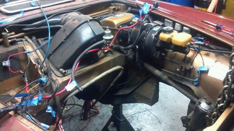 I got back to the house and started working on the car with my dad and brother. We tackled a number of projects and made some real progress. Many of you know I'm tucking the wires and relays in the car. It will give it a clean look. Here's the before: