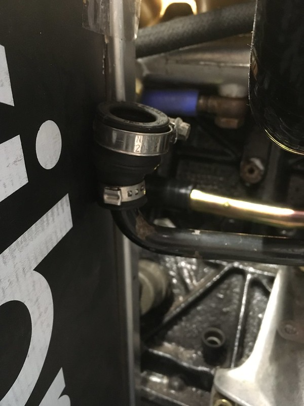 More coolant hose parts from Pegasus arrived. Yes, those are Dzus fasteners. More on those later. This hose worked out a lot simpler than we thought it might with just two shortened elbows, one of them being a reducer.