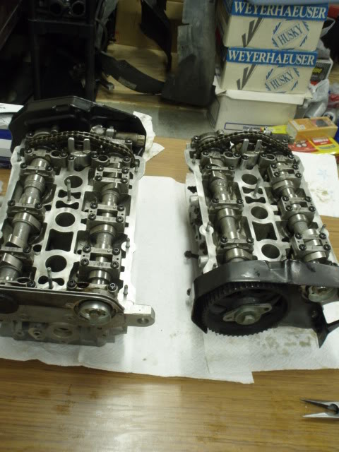 So I've got completed heads. They were hottanked, decked, 3-angle valve job, valve seats modified for 1mm oversize intake valves, and new guides were installed.