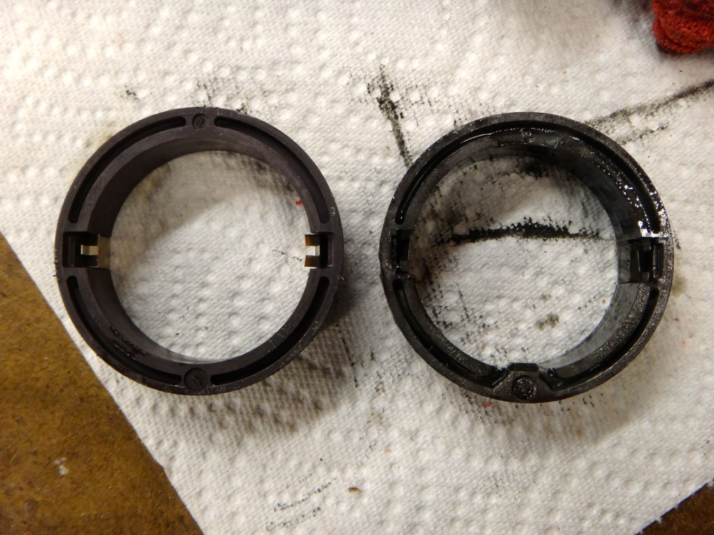 Old compared to the new. Notice the lack of a "locating tab" on the new ring. It ended up locking into place with the side clips anyways.