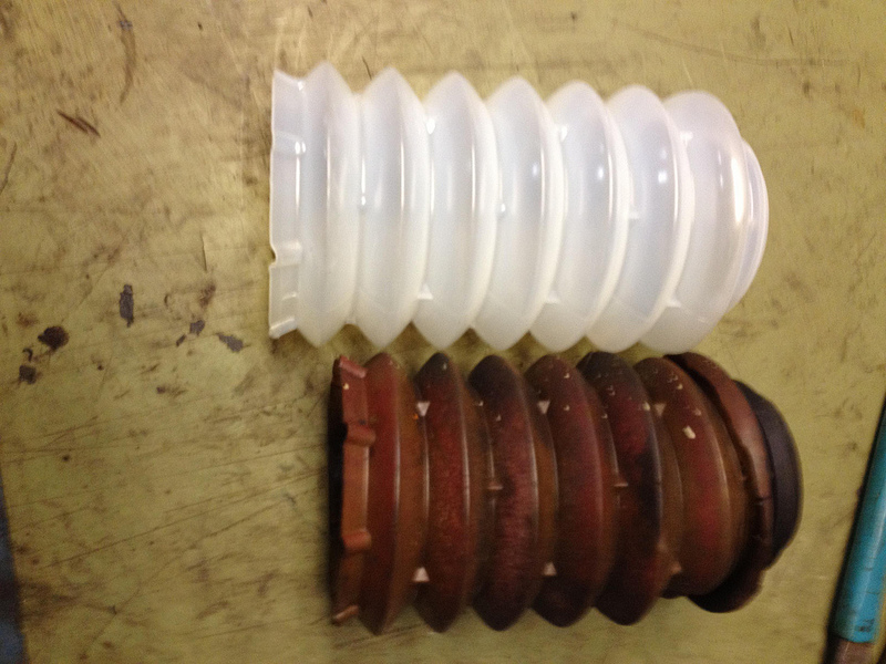 Then I replace the front strut bellows which arrived the same day as the bushings. Incidentally these are for a Porsche 944! Same part though.