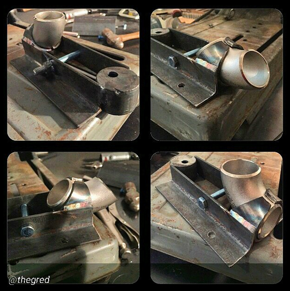 Just witnessed some horrible fab work so had to cleanse my pallet with some updates from @thegred "This is the elbow cutting jig I made. Slide it in, tighten it up and boom, cut and angle you need. Bolts right to the saw.
