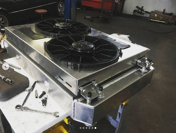 Some more progress with fitting stuff for the rear mounted radiator. FYI these cast parts were absolutely horrible to weld to, lots of impurities in em so they're not perfect but good enough. Fittings courtesy of @phenixindustries