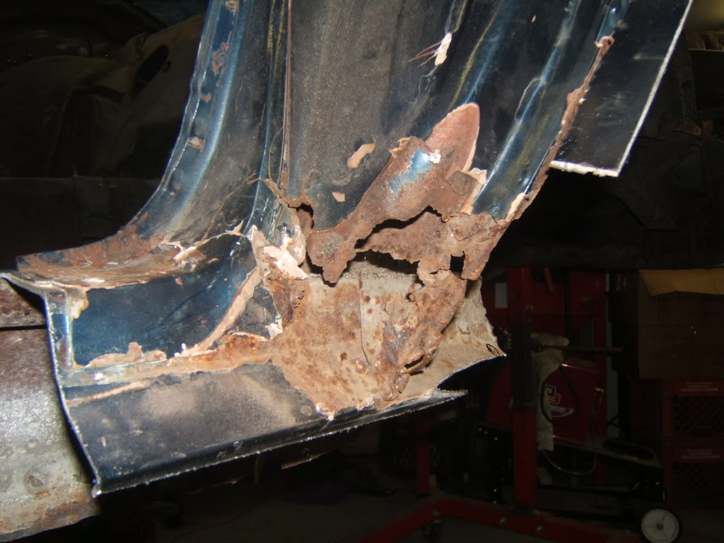 Heres some pics of yesterday and todays evening progress. As ya can see in the pics the door jam brace on my car is JUNK. I will be using the brace off the donor quarter panel. Hopefully tomorrow I can get the rest of rocker, 1/4 and wheelhouse off. Then friday and/or saturday get the donor 1/4 and brace ready for test fit.