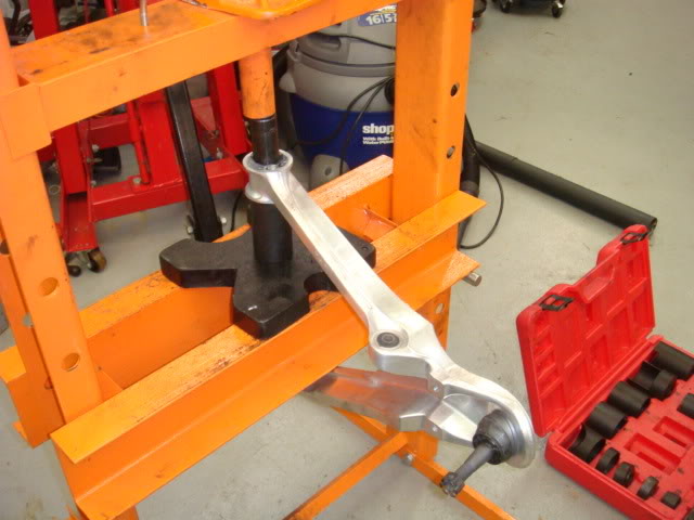 Once that was done, the rest was a walk in the park. Just setup the press, use a fitting that fits over the outer rim of the ball joint and press from the top down.