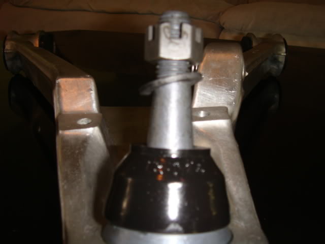 Here's a shot right after I VERY CAREFULLY grinded away the tab without damaging any of the Aluminum A-arm.