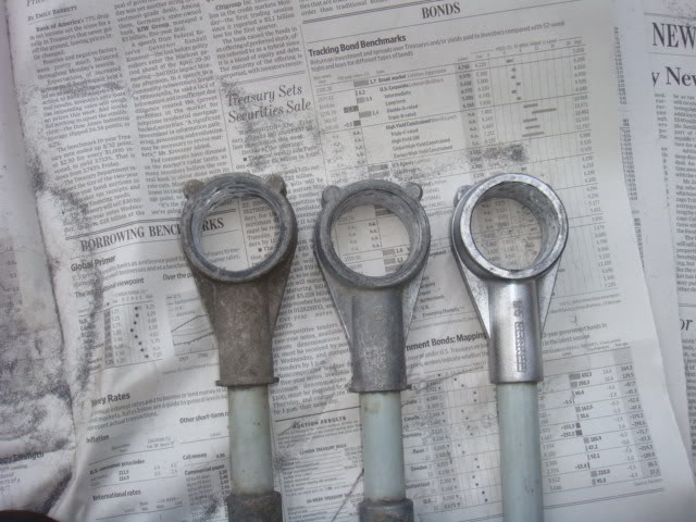Ialso took on the dogbones, I'm not sure what was used in the installation of the bushing, but it left a residue that I had to dremmel out of the internal areas of these. Once I took care of the inner caked on crap, I then started working on the dogbones themselves. I tried to tackle these like I did with the front suspension pieces but I had to use a drill with a wire wheel to get these properly cleaned.