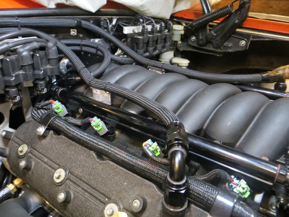 I made little aluminum cradle brackets to hold the breather hoses how I wanted, and are secured using the intake and fuel rail bracket hardware...