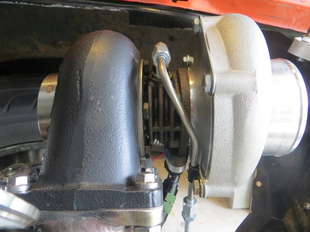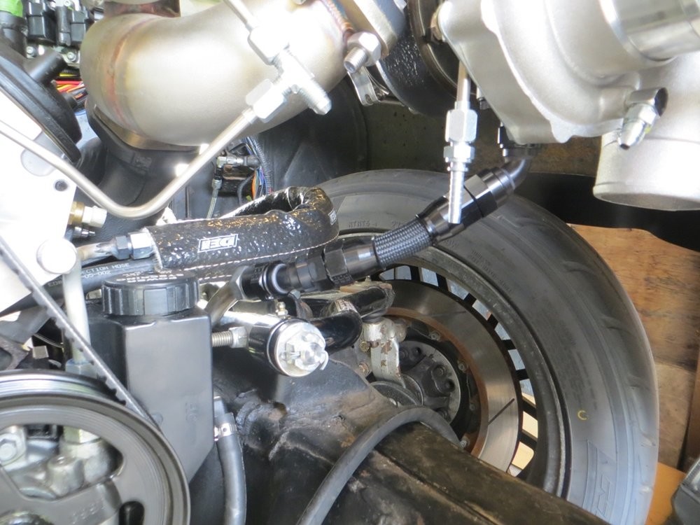 b) provides a hard point to then attach a forced-bend flex line between the turbo and the subframe (I'll explain later)