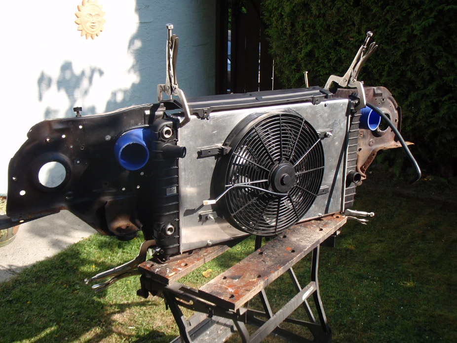 I'm going to "box" in the lower double-thickness parts of the rad support which were chopped up. This'll add rigidity as well as act like ducting for the part of the rad which doesn't have any IC in front of it...