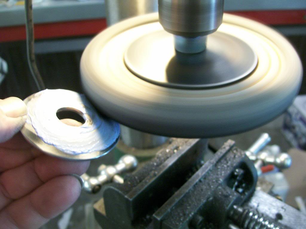 Then polishing. I adapted a wheel to the drill press then applied some metal polishing compound.